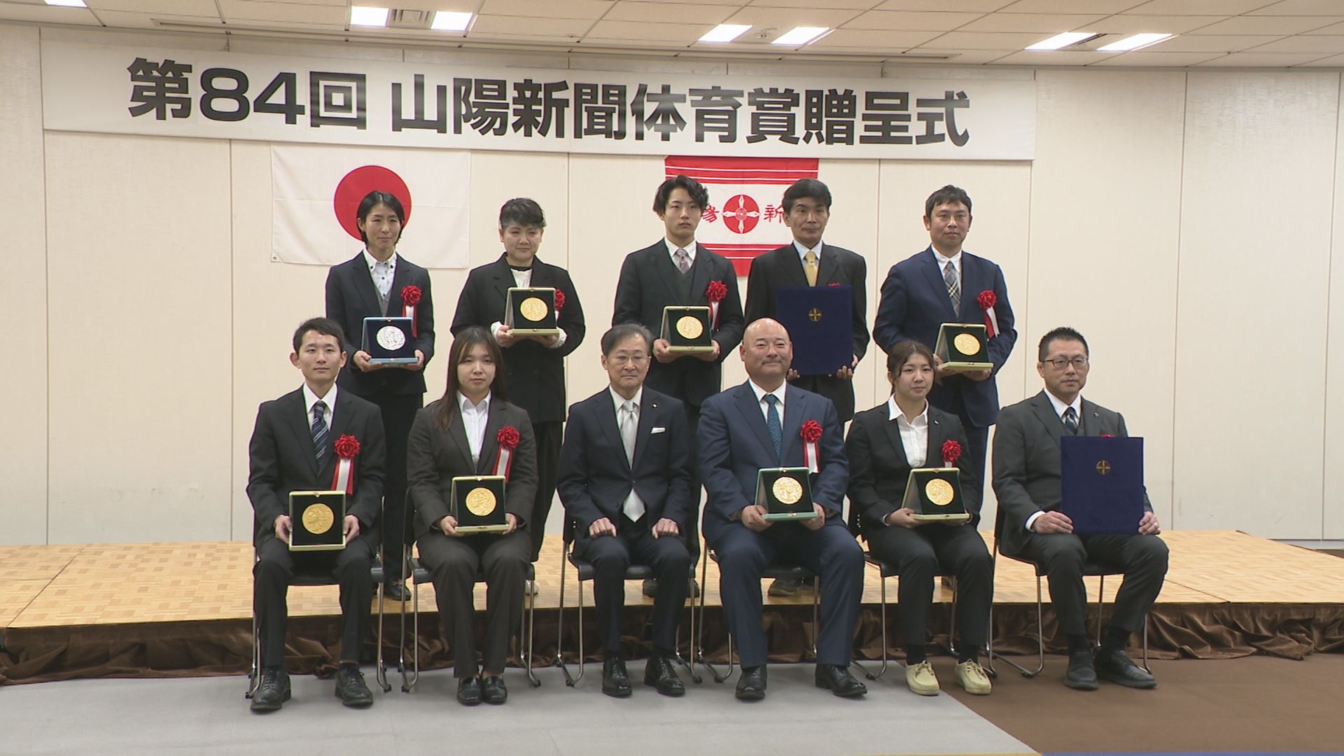 山陽新聞体育賞贈呈式 青学野球部の安藤監督ら7人と2団体を表彰
