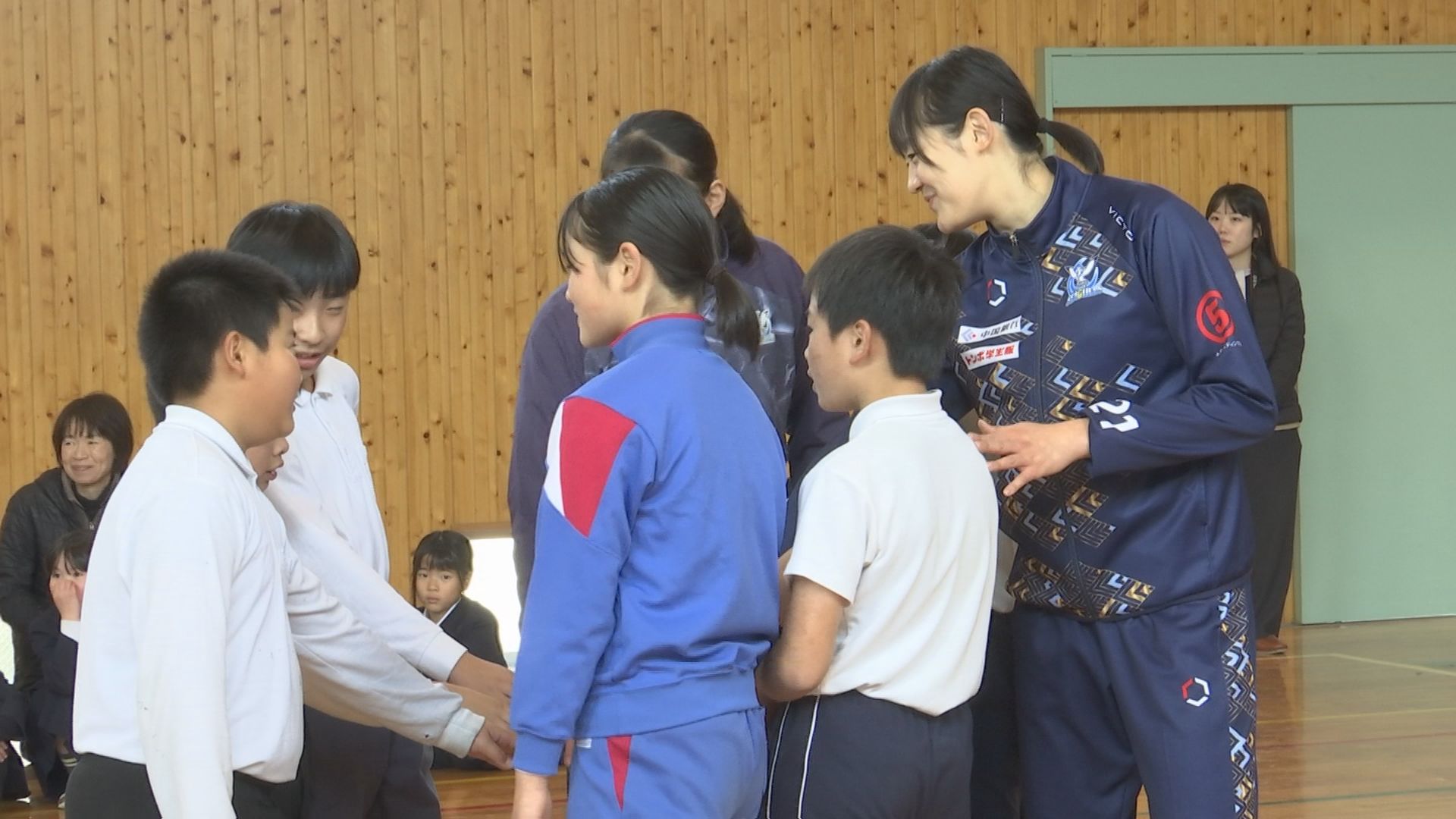 児童たちにバレーボールの楽しさを伝えようと2月6日、岡山市北区御津新庄の五城小学…