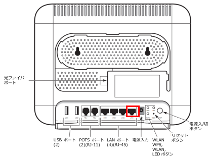 | POTSポート1/2 | RJ-11ポート:※こちらのポートは使用しません。 |