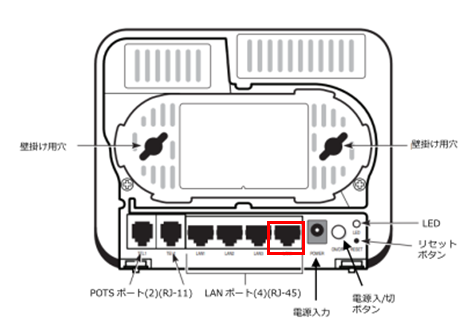 | 【ご注意ください】LANポート一番右側(赤枠)のLANポート4は 電話用モデム「HGW」or「WMTA」専用ポートとなります。 | |