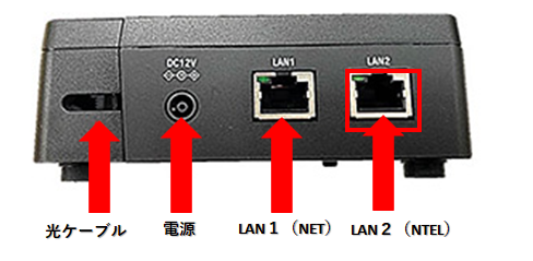 | LAN2 (TEL用) | 【ご注意ください】(赤枠)のLAN2は電話用モデム 「HGW」or「WMTA」専用ポートとなります。 |